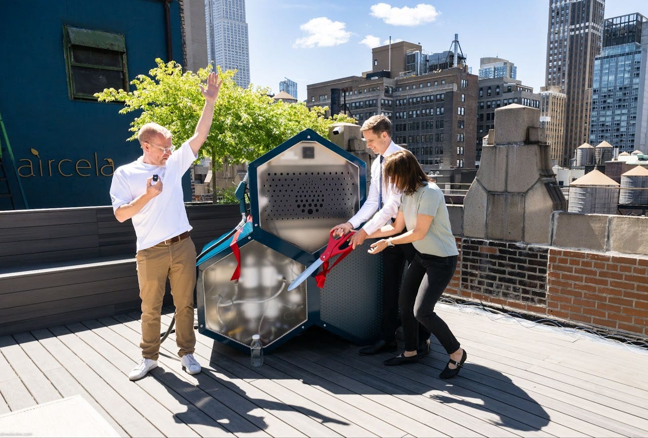 Aircela could be placed in households, creating a rooftop gas station, or they could be set up in a solar farm, replacing the need to go to gas stations.